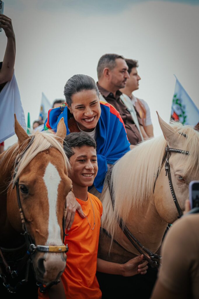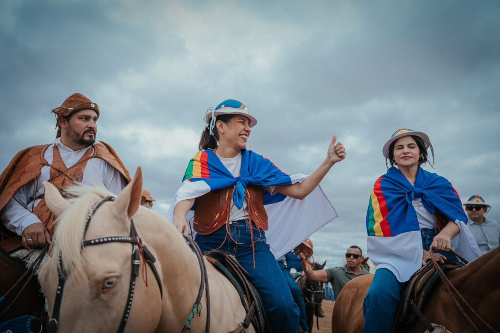 A governadora Raquel Lyra participou, neste domingo (20), da 55ª edição da Missa do Vaqueiro, no município de Serrita, Sertão Central de Pernambuco. Acompanhada pela vice-governadora Priscila Krause, a gestora prestigiou a celebração religiosa a cavalo, ao lado dos vaqueiros e vaqueiras que anualmente lotam o evento, demonstrando a força do homem e da mulher do Sertão.