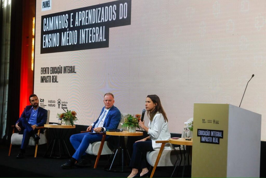 O evento Educação Integral Impacto Real foi organizado pelo Instituto de Corresponsabilidade pela Educação (ICE), Instituto Natura e Instituto Sonho Grande, com o objetivo debater avanços, impactos e perspectivas do Ensino Médio Integral no Brasil. A governadora Raquel Lyra participou do painel sobre o ensino integral ao lado do governador do Espírito Santo, Renato Casagrande, e do secretário executivo do Ministério da Educação (MEC), Leonardo Barchini, no qual discutiu resultados, estratégias de expansão e os desafios da próxima década.