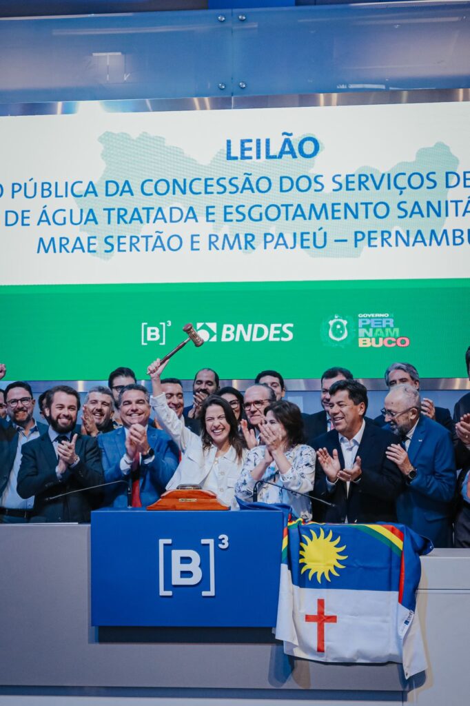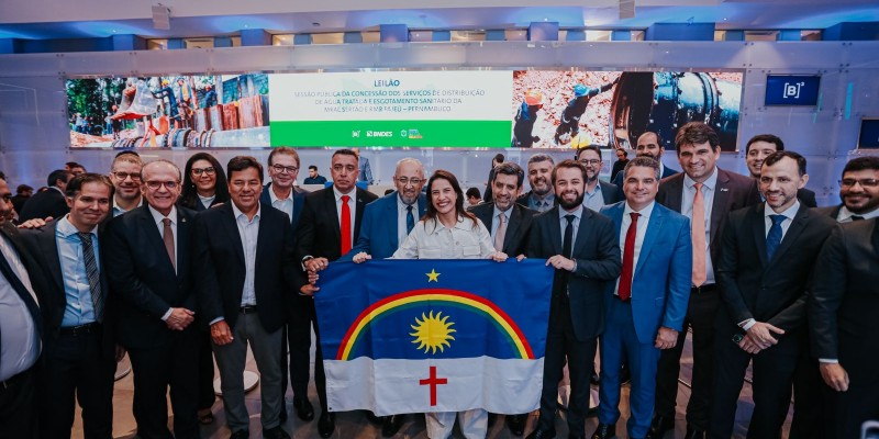 Sob a liderança da governadora Raquel Lyra, Pernambuco deu nesta quinta-feira (18), um passo histórico rumo à universalização do saneamento básico, com a realização do leilão da concessão parcial dos serviços no Estado, realizado na B3, em São Paulo. Os grupos Consórcio Pernambuco Saneamento e a Pátria Investimentos, que apresentaram as propostas vencedoras, vão investir, juntos, R$ 19 bilhões na distribuição de água e na coleta e tratamento de esgoto, enquanto a Companhia Pernambucana de Saneamento (Compesa) continuará sendo responsável pela produção e tratamento de água. Além deste valor, foram levantados em outorgas R$ 4,2 bilhões, que serão destinados à universalização do saneamento e infraestrutura dos municípios, preferencialmente saneamento. A vice-governadora Priscila Krause também acompanhou a cerimônia.