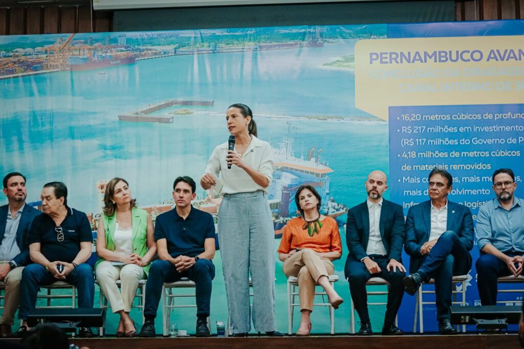 Pernambuco protagonizou mais uma entrega estratégica para o desenvolvimento do Estado. Nesta sexta-feira (30), a governadora Raquel Lyra, ao lado do ministro de Portos e Aeroportos, Silvio Costa Filho, entregaram a dragagem do canal interno do Complexo Industrial Portuário de Suape, que permitirá o atracadouro receber maiores embarcações mundiais com capacidade máxima de carga. A obra recebeu um aporte total de R$ 217 milhões, sendo R$ 117 milhões do Governo de Pernambuco e R$ 100 milhões do Governo Federal, por meio do Programa de Aceleração do Crescimento (PAC-3). A vice-governadora Priscila Krause também participou da entrega. “Prometemos fazer grandes investimentos no Porto de Suape. Nos últimos três anos, garantimos obras aguardadas há décadas. Entregamos a dragagem do canal externo, e, agora, do canal interno, e estamos fazendo a recuperação do molhe. Todos esses investimentos são para que possamos receber os maiores navios do mundo, aumentando a competitividade portuária de Pernambuco e gerando mais emprego, renda e desenvolvimento”, destacou a governadora Raquel Lyra.