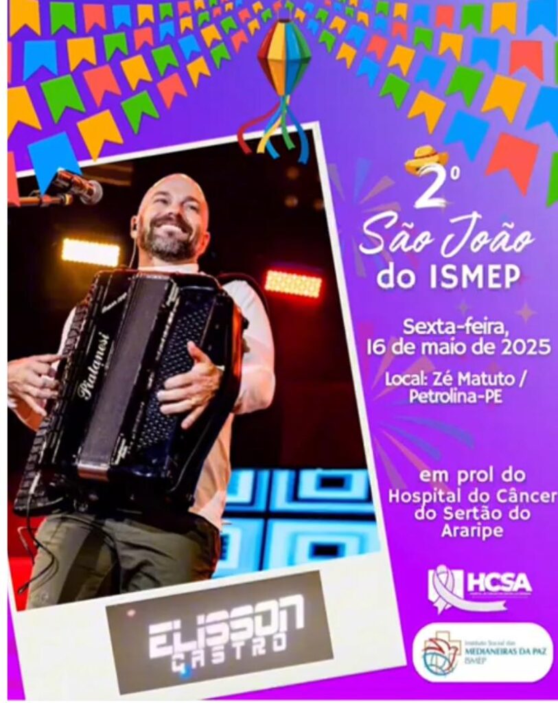 O cantor e sanfoneiro Elisson Castro é um dos artistas voluntários da 3ª edição do São João do Ismep que acontecerá na sexta-feira, dia 08 de maio, às 19h, na Casa de Shows Zé Matuto em Petrolina. O evento tem como objetivo arrecadar recursos para o Hospital do Câncer do Sertão Araripe (HCSA) que está em construção na cidade de Araripina.