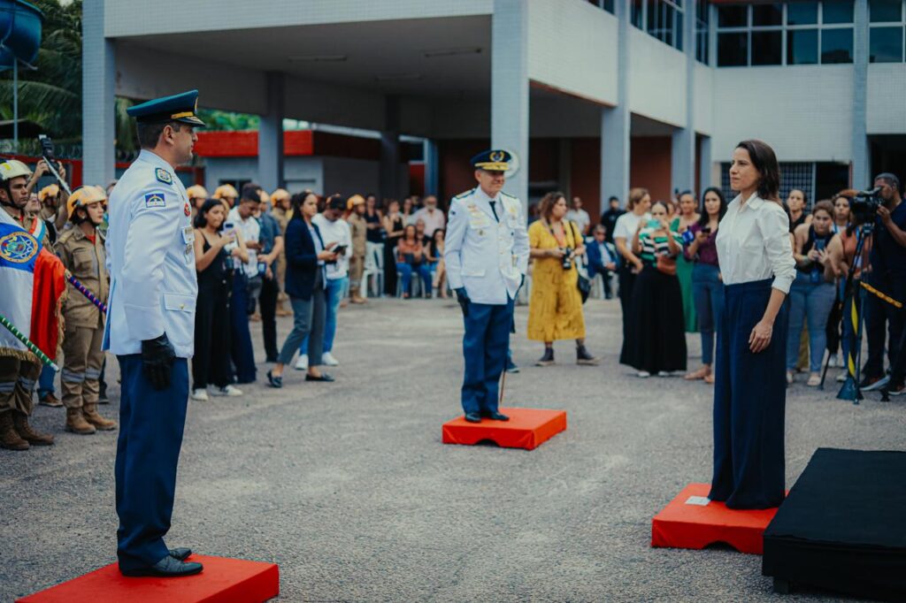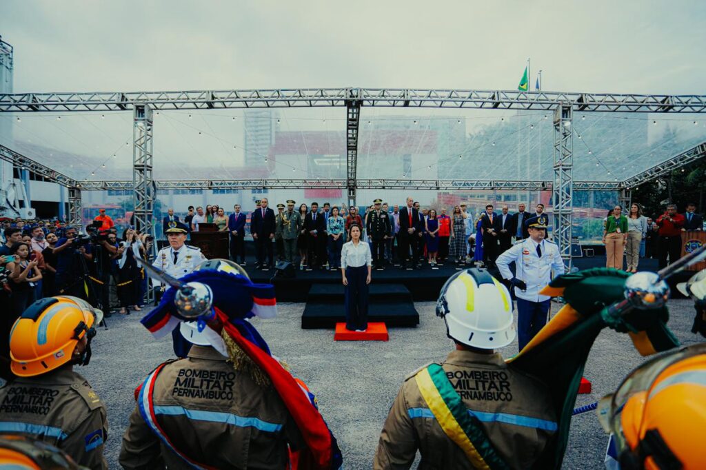 A governadora Raquel Lyra liderou, na tarde dessa segunda-feira (20), a cerimônia de passagem de comando do Corpo de Bombeiros Militar de Pernambuco (CBMPE).